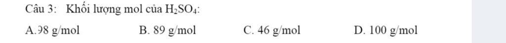 VÌ MH2SO4 = 1 x 2 + 32 + 16 x 4 = 98 ( g/mol )