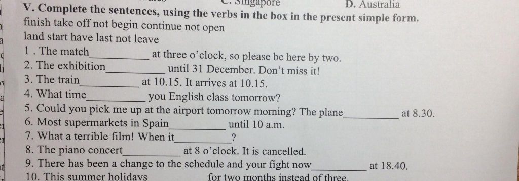V. Complete the sentences, using the verbs in the box in the present simple form.