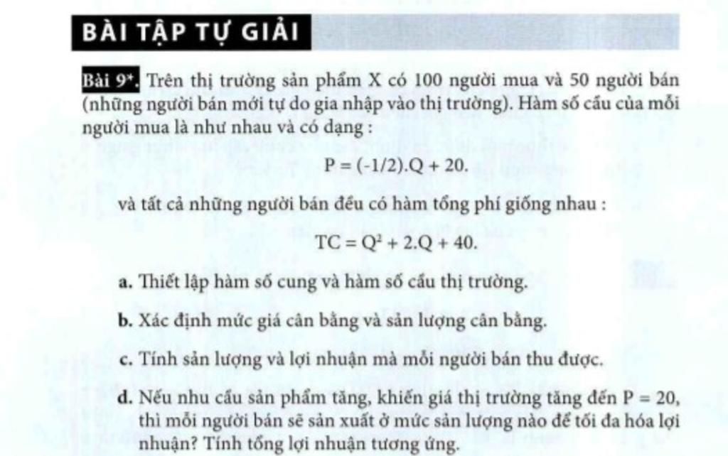b) Thị trường cân bằng $\Leftrightarrow Q_S = Q_D$