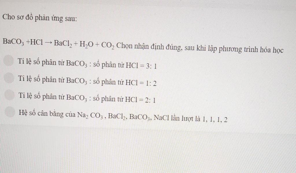 ⇒Tỉ lệ số phân tử BaCO3 : phân tử HCl = 1:2
