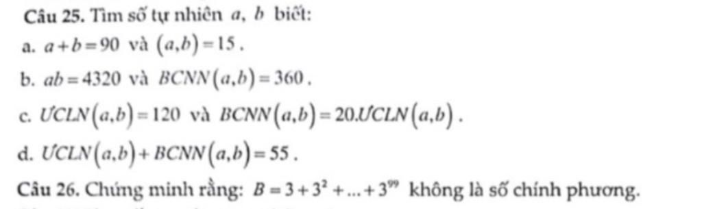 Câu 25. Tìm số tự nhiên a, b biết: