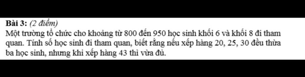 Gọi số học sinh khối 6 và khối 8 đi tham quan là x (800 ≤ x ≤ 950)