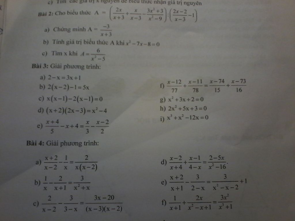 Bài 3: Giải phương trình: