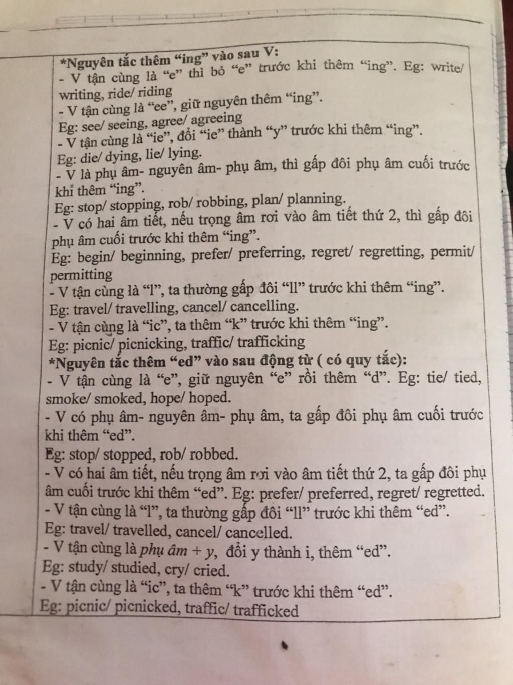 +Động từ tận cùng bằng "ee", chỉ việc thêm "ing" ...
