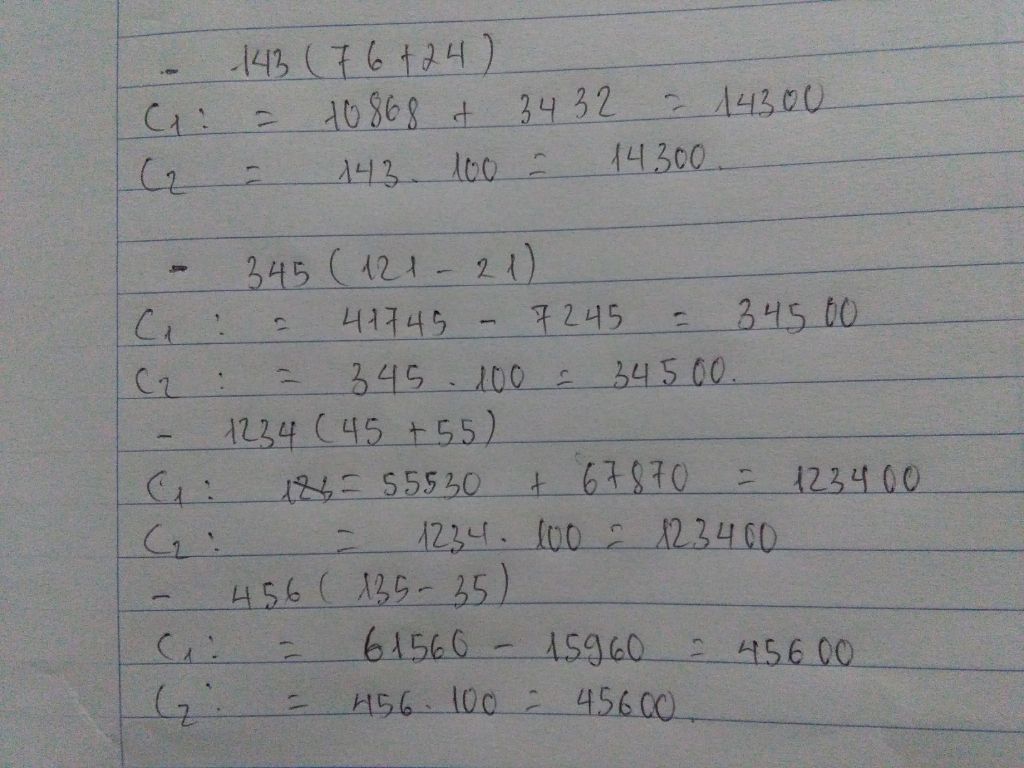 +) $143\times(76\times24)=143\times76+\times24=10868+3432=14300$