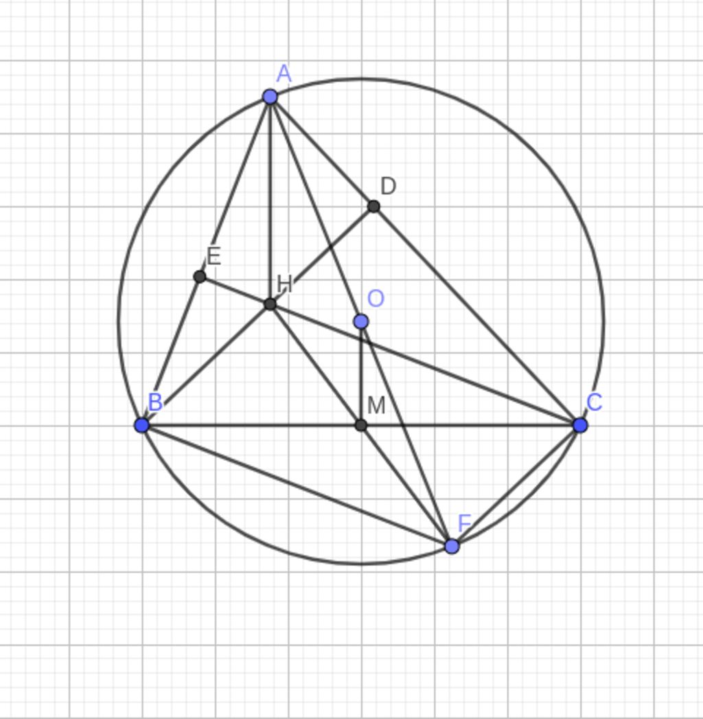 b.Ta có $AO\cap (O)=F\to AF$ là đường kính của $(O)$