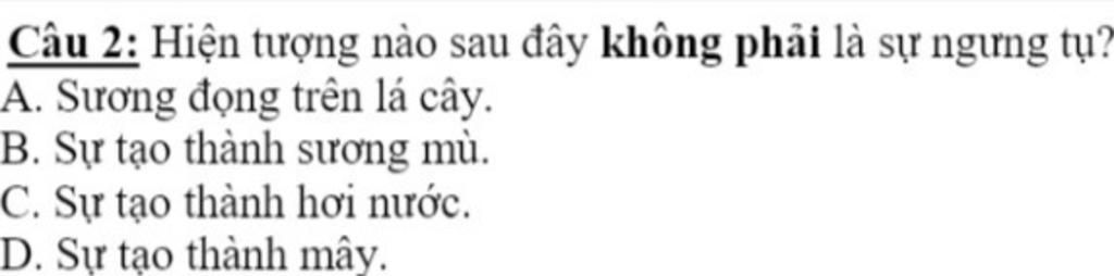 Sự tạo thành hơi nước là từ quá trình bay hơi hoặc sôi của nước lỏng chứ không phải sự ngưng tụ.