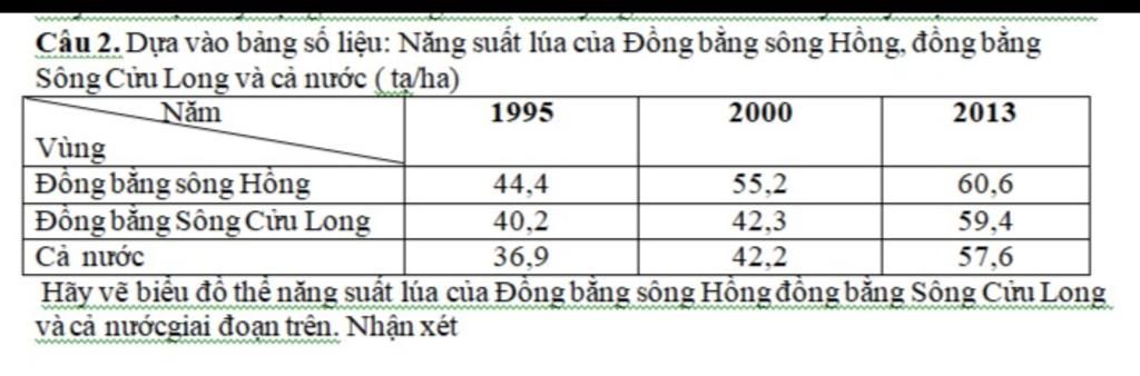 - Năng suất lúa Đồng bằng sông Hồng khá nhanh từ 44,4 tạ/ha lên 60,6 tạ/ha (tăng 16,2 tạ/ha).