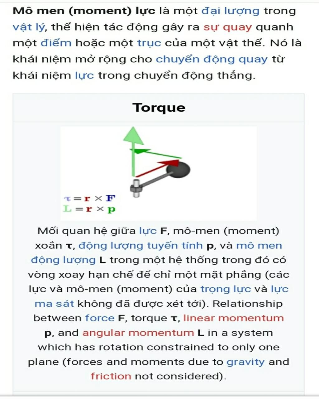 Momen lực :`M = F.d`