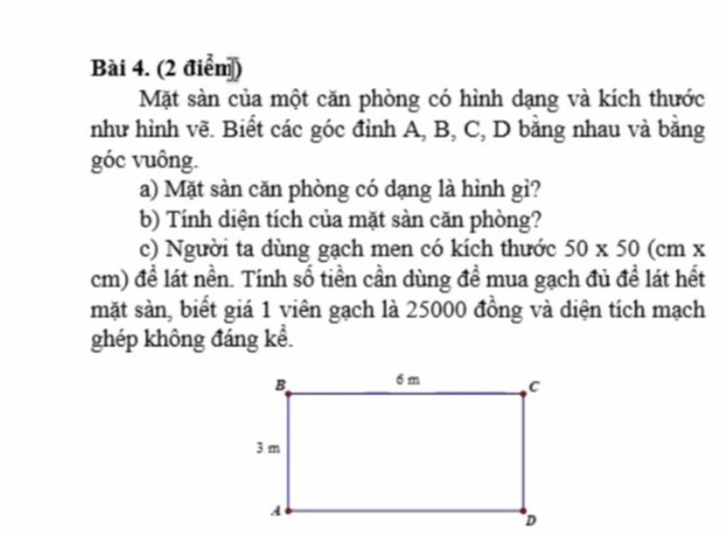 a) Mặt sàn căn phòng có dạng hình chữ nhật