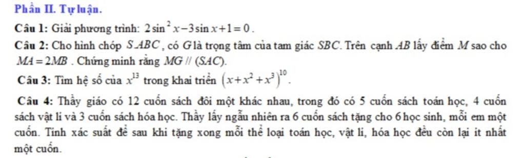 Sô cách lấy bằng số cách chọn ra 6 quyển để bỏ lại. Yêu cầu đặt ra là 6 quyển để lại phải đủ cả 3 môn.