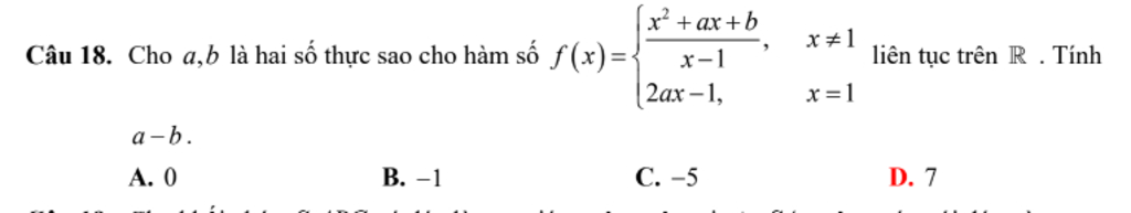 Hàm số đã cho liên tục trên R khi và chỉ khi: