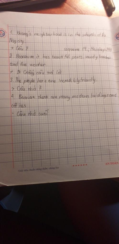→ Dẫn chứng : My neighborhood's very different. It’s in the suburbs of Da Nang City.