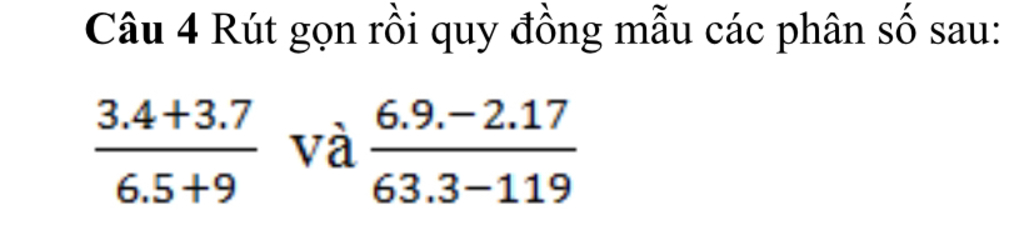 Giải thích các bước giải:3.4+3.7/6.5+9 và-2.17/63.3-119