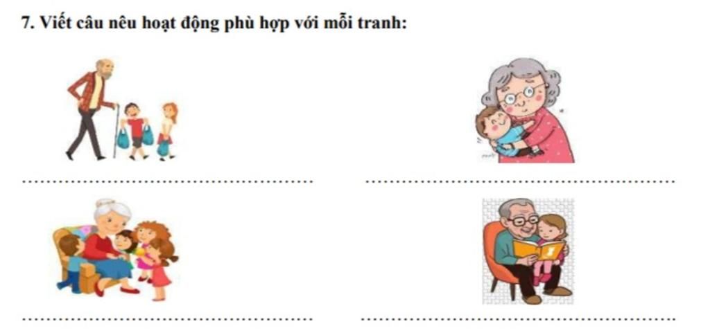 Tranh 3: The children are gathered around their grandma.