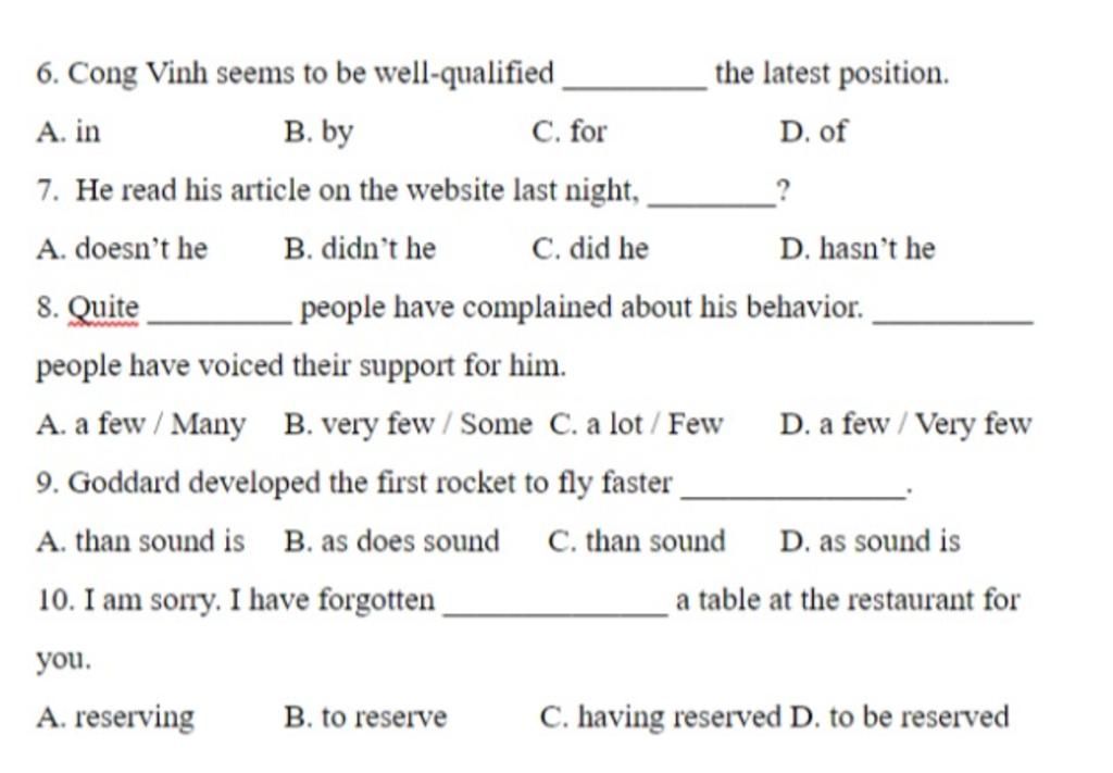 => rất nhiều người phàn nàn về hành vi của anh ấy. rất ít người lên tiếng ủng hộ anh ấy
