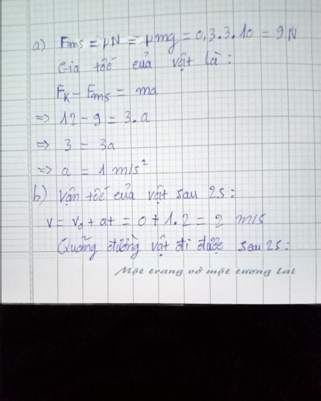 ⇒ $a=\dfrac{F_k-F_{ms}}{m}=\dfrac{12-9}{3}=1 \ (m/s^2)$