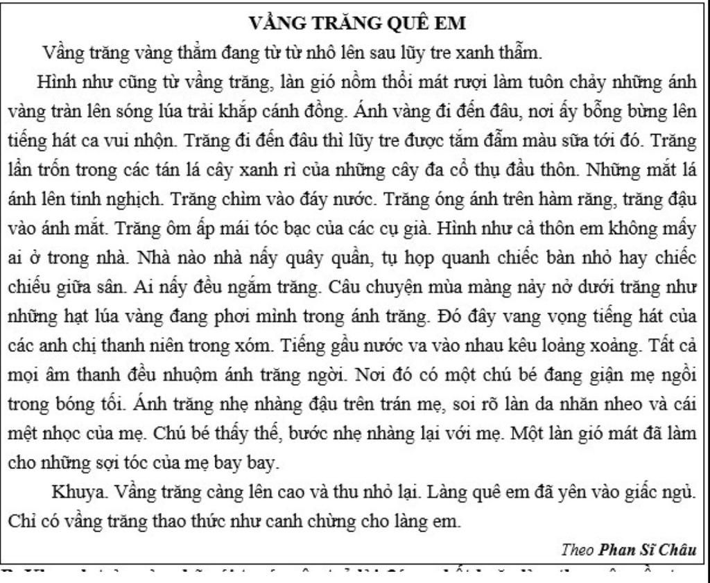 `-` "Hình như cả thôn em không mấy ai ở trong nhà. Nhà nào nhà nấy quây quần, tụ họp quanh chiếc bàn nhỏ hay chiếc chiếu giữa sân. Ai nấy đều ngắm trăng."