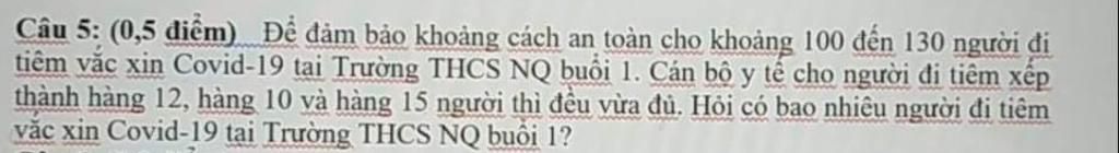 Gọi số người đi tiêm vắc xin là `a` `(` `100` `<` `a` `<` `130` `)`