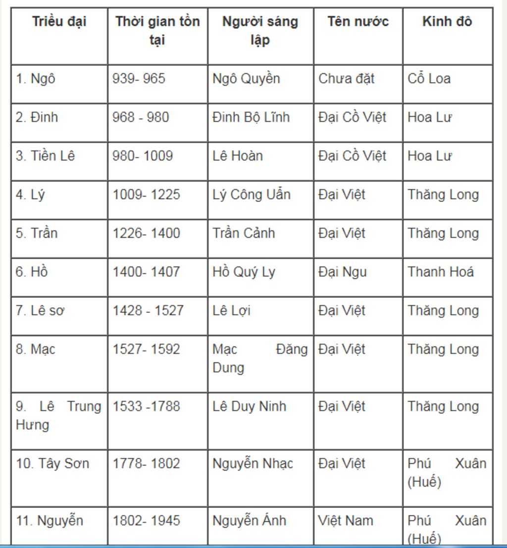 -Nhà Đinh(từ 968 đến 980): Đinh Bộ Lĩnh(kinh đô Hoa Lư)