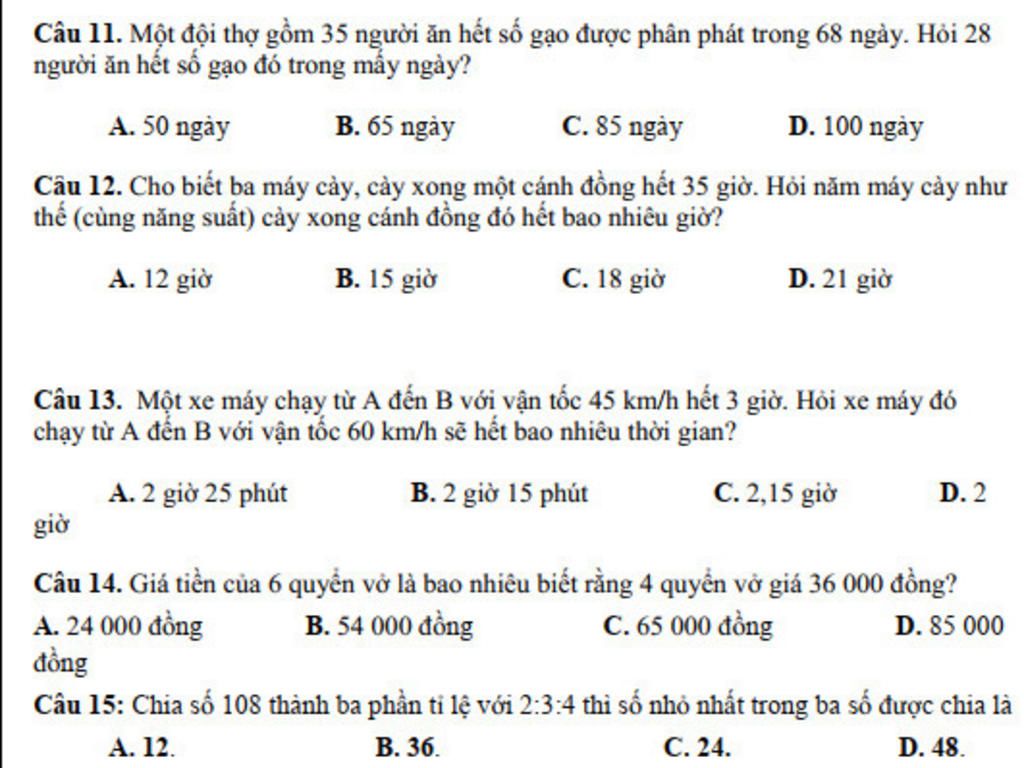 Với vận tốc 60km/giờ thì xe máy đó mất thời gian chạy là: 135:60=2.25(giờ)