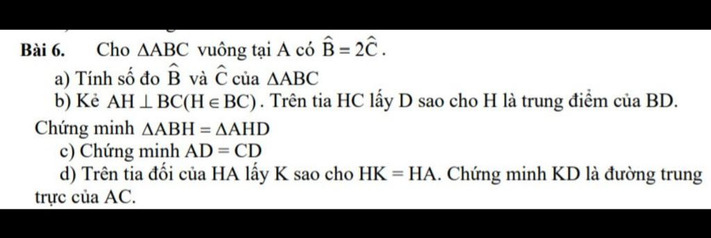 Cho AABC vuông tại A có B = 2Ĉ.