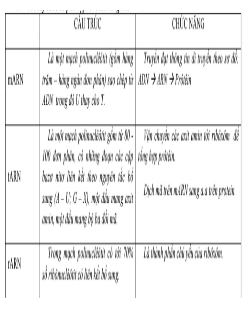 - Có nhiều loại ARN với cấu tạo và chức năng khác nhau: