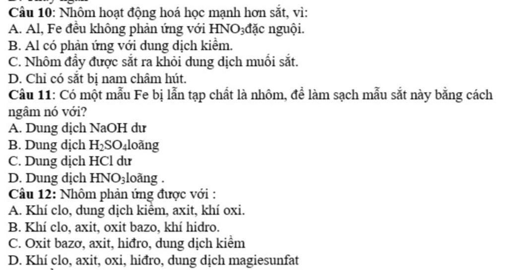 Nhôm có thể tác dụng với dd kiềm , axit , khí clo, khí oxi
