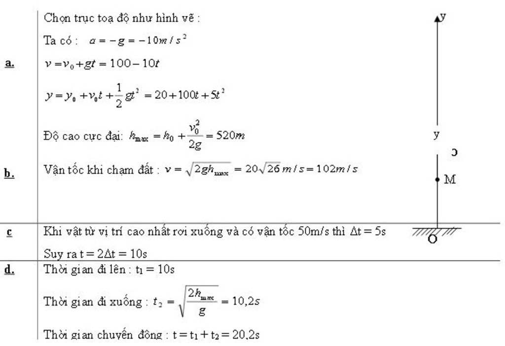 b) Vận tốc khi chạm đất : v= $\sqrt[]{2gh_{max} }$ = 20$\sqrt[]{26}$ m/s =102m/s