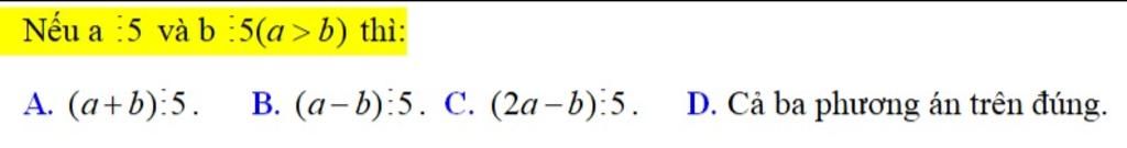 Nếu a:5 và b:5 thì (a+b):5 và (a-b):5 hoặc 2.(a+b):5 và 2.(a-b):5