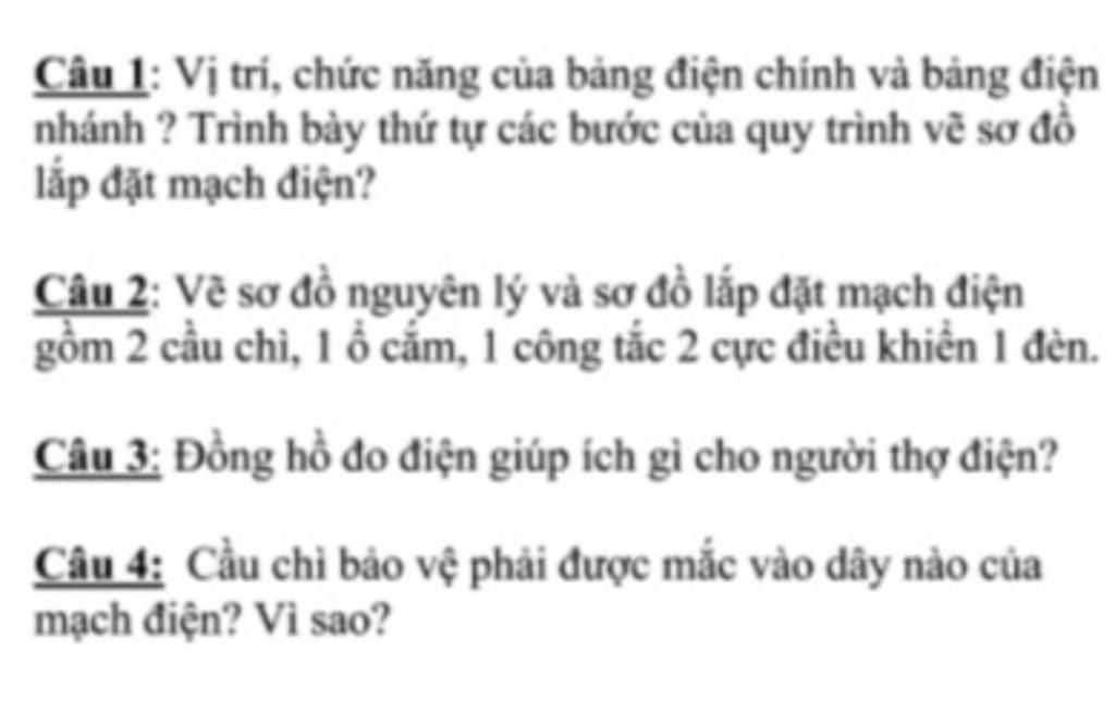 Câu 2: Vẽ sơ đồ nguyên lý và sơ đồ lắp đặt mạch điện