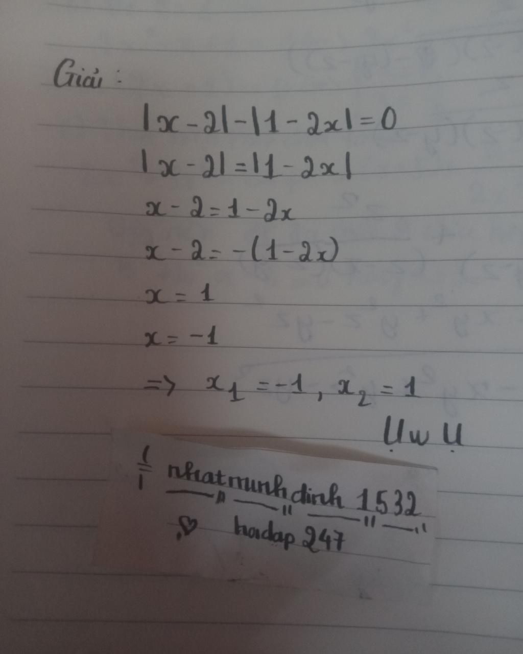 `=>` `|x - 2| = 0 + |1 - 2x|`