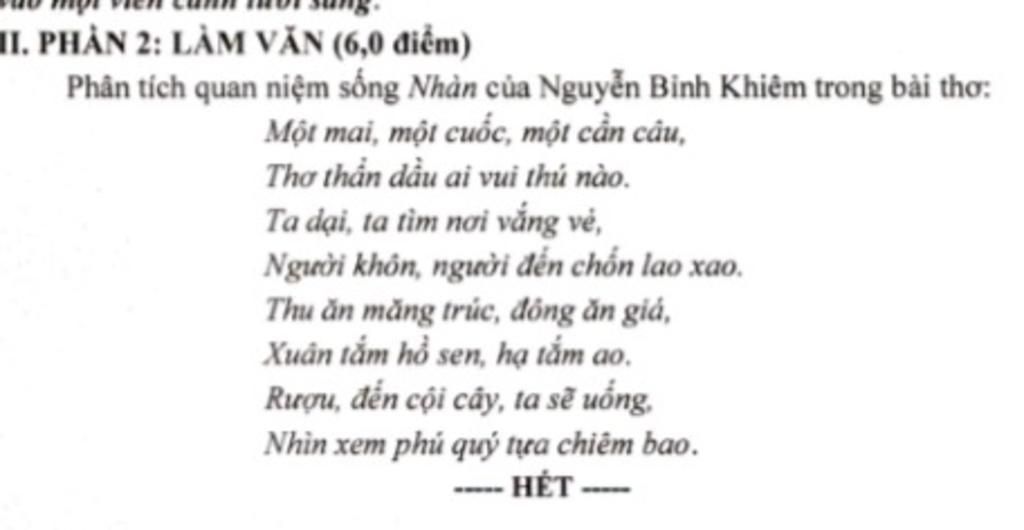 Nguyễn Bỉnh Khiêm chỉ làm quan tám năm sau đó trở về ở ẩn. Bởi vậy, thơ ca của ông thấm đượm triết lí sống nhàn. Sự nghiệp sáng tác của ông cho thấy quan niệm sống nhàn hết sức phong phú, phức tạp. Và trong bài thơ Nhàn đã phần nào thể hiện được sự phong phú về quan điểm sống ấy.