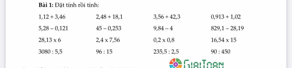 1,12+3,46=4,58 ; 2,48+18,1=20,58 ; 3,56+42,3=45,86 ; 5,28-0,121=5,159 ; 45-0,253=44,747 ; 9,84 - 4=5,84 ; 829,1-800,91
