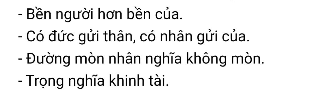 -Câu "Bền người hơn bền của."nghĩa là lúc nào cũng phải coi trọng con người hơn là coi trọng cái tài sản,của cải vật chất.