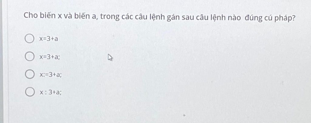 Câu lệnh gán đúng cú pháp là x:=3+a;