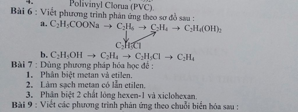 7) 1) Dẫn qua Br2 -> etilen làm mất màu