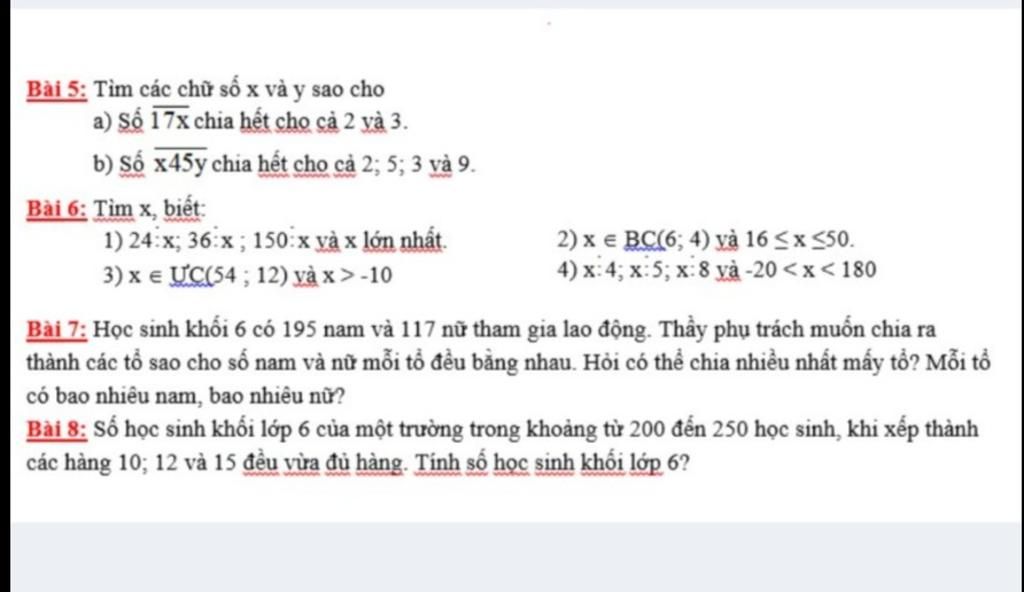 1) 24:x; 36:x ; 150:x và x lớn nhất.