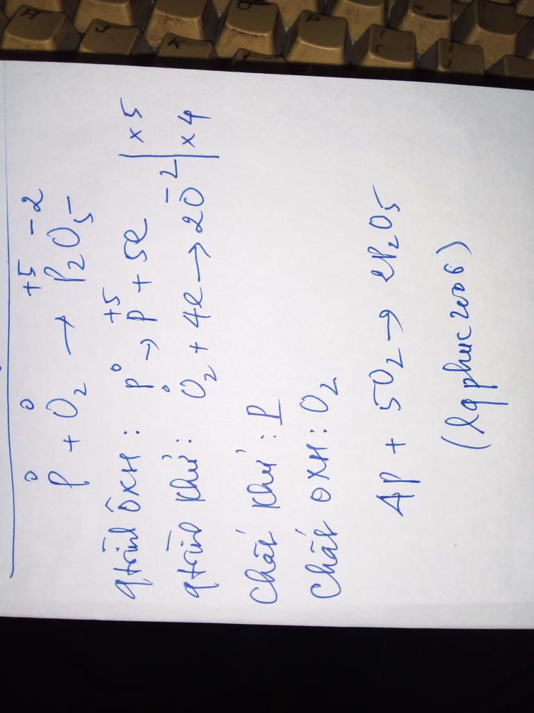 $\mathop{P}\limits^{0}$ + $\mathop{O_2}\limits^{0}$ `->` $\mathop{P_2O_5}\limits^{+5-2}$