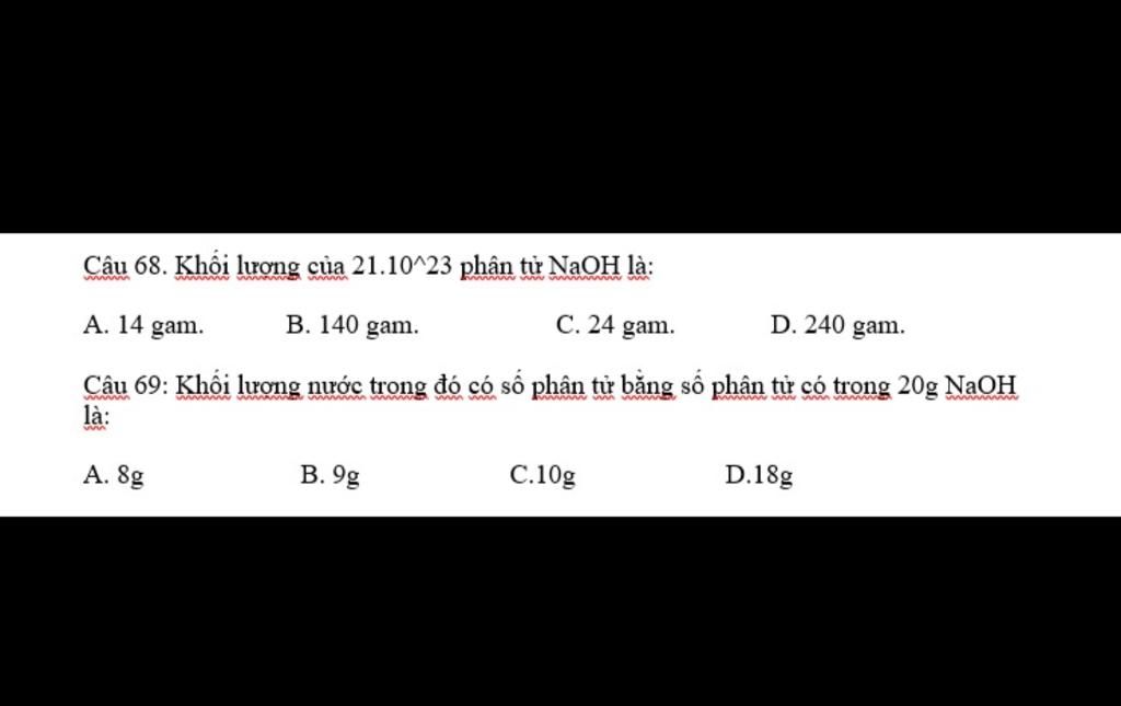 Số mol của `21.10^{23}` phân tử `NaOH` :