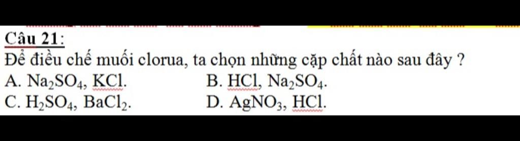 $A,B$ loại vì hai muối clorua tan trong dung dịch, khó hoặc không thể điều chế.
