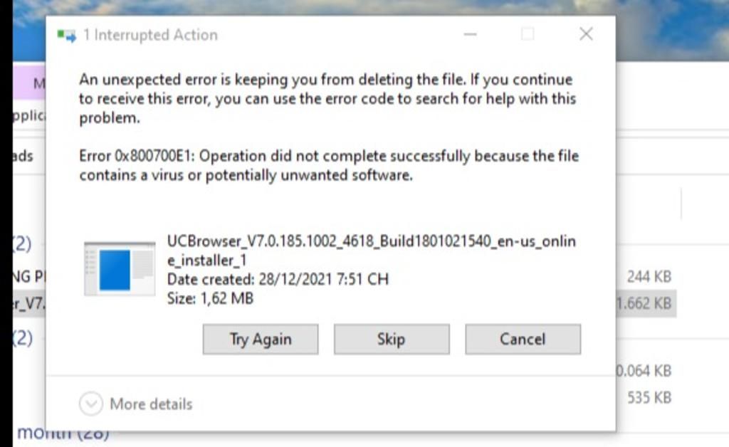 An unexpected error is keeping you from deleting the file. If you continue
