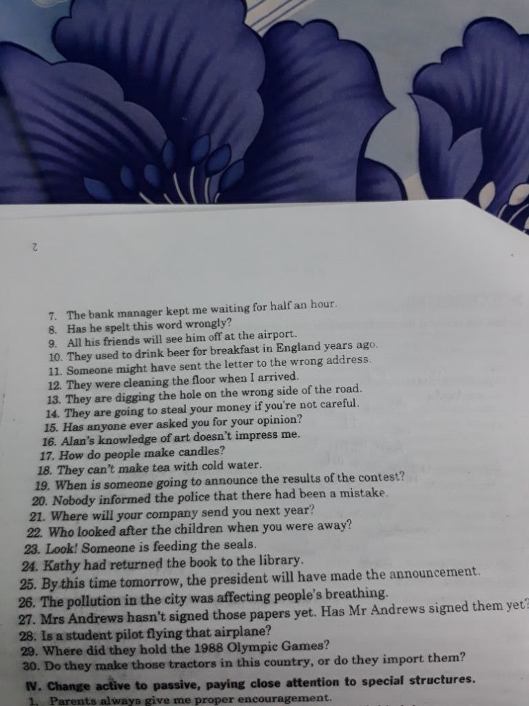27. Mrs Andrews hasn't signed those papers yet. Has Mr Andrews signed them yet?