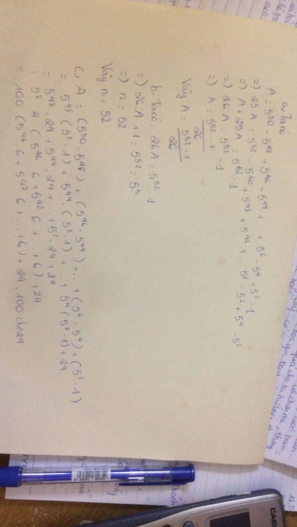 a.Ta có: A=550-548+546-544+…+56-54+52-1