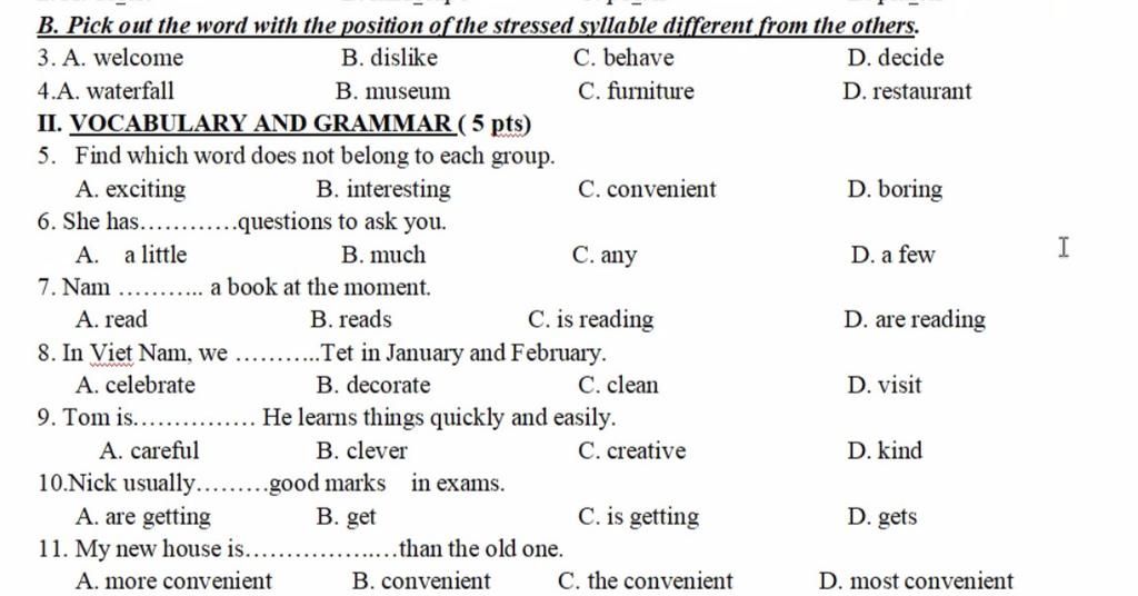 II. VOCABULARY AND GRAMMAR (5 pts)