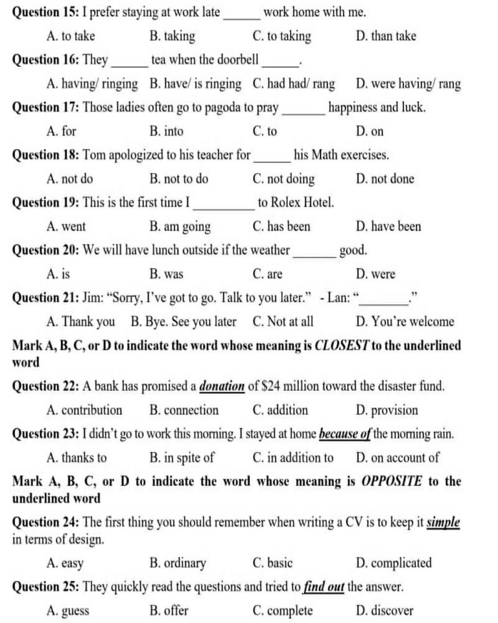Question 17: Those ladies often go to pagoda to pray