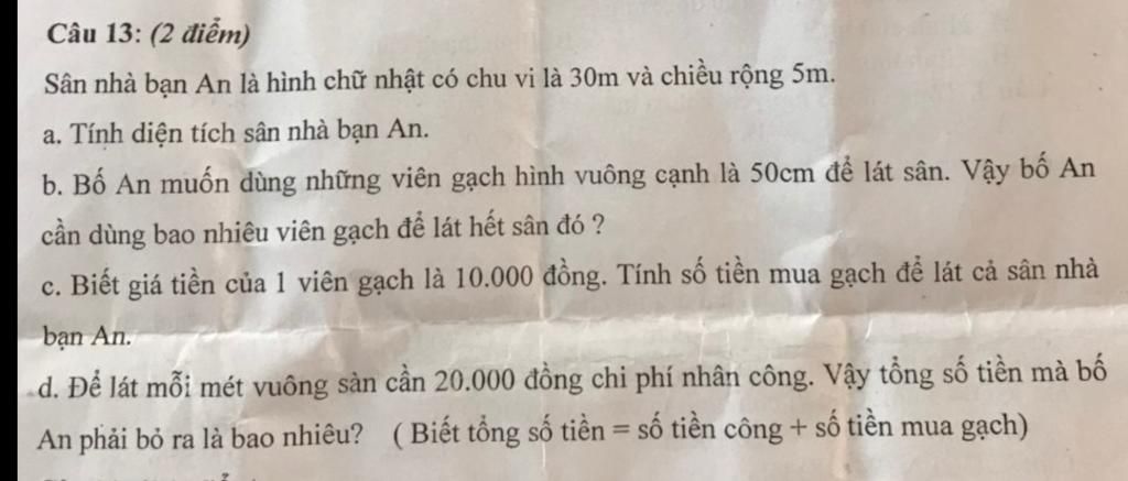 Vậy tổng số tiền mà bố An phải bỏ ra là: