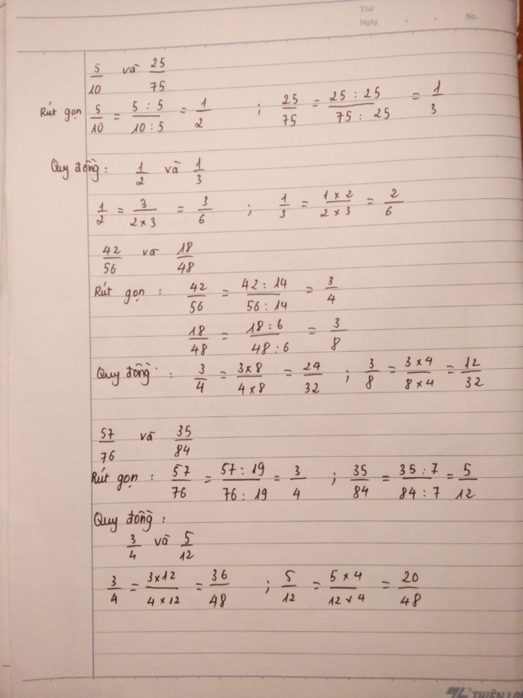$\dfrac{5}{12}$ không phải quy đồng