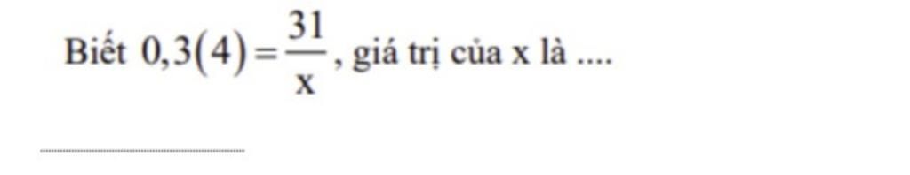 Ta có, 0,3(4) = (34 – 3)/90 = 31/90`