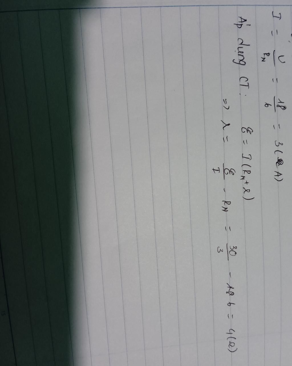 `I=\frac{U}{R_{N}}=\frac{18}{6}=3(A)`